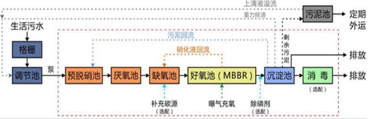 - 該技術也用于一體化設備構建,可有效比常規工藝節約1/3-1/2的占地面積,管理也更為簡單。