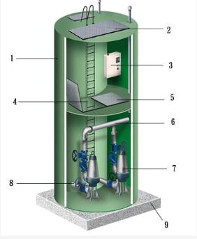 二、 一體化污水泵站的設計要求: 1.容易發生洪水的地區,入口處的設計地面標高應比設計洪水位高0.5m以上,當不能滿足上述要求時,可以在入口處安裝臨時防洪措施,例如水閘。 2. 位于居民區和重要地區的污水和污水排污泵站應配備除臭裝置。 3. 自然通風條件差的地下水泵房應配備完善的機械排風系統。 4.在經常需要管理的泵站附近,應設置值班室和通訊設施。 5.對于遠離居民區的一體化污水泵站,應根據需要設置相關人員進行維護。 6.污水泵房的建筑物及輔助設施應采取防腐措施,一體化污水泵站與住宅和公共建筑之間的距離應符合消防和環境保護部門的要求。 一體化污水泵站應采用自灌式泵站,泵房應有二個出入口,其中一個應能滿足設備或部件的進出,一體化污水泵站的電源應根據二級負荷進行設計,特別重要的區域的一體化污水泵站應根據一級負荷進行設計,如果無法滿足上述要求,應安裝備用電源設備。 |