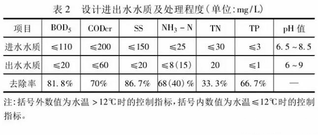 鄉(xiāng)鎮(zhèn)污水經(jīng)污水處理廠處理后的尾水最終排入附近的地表水域,《福建省人民政府關(guān)于加快推進(jìn)鄉(xiāng)鎮(zhèn)生活污水處理設(shè)施建設(shè)的實(shí)施意見》及《小城鎮(zhèn)污水處理廠工程建設(shè)標(biāo)準(zhǔn)》(建標(biāo)148-2010)要求,規(guī)模3000m3/d以下(lll類)的鄉(xiāng)鎮(zhèn)污水處理廠排放標(biāo)準(zhǔn)執(zhí)行《城鎮(zhèn)污水處理廠污染物排放標(biāo)準(zhǔn)》(GB18918)三級(jí)排放標(biāo)準(zhǔn),對(duì)水體有特殊要求的,按環(huán)評(píng)要求執(zhí)行。 由于鄉(xiāng)鎮(zhèn)污水主要為生活污水,處理難度不大,而對(duì)于設(shè)置有除磷脫氮功能的二級(jí)處理工藝的污水處理廠其排放標(biāo)準(zhǔn)由二級(jí)提高到一級(jí)B標(biāo)準(zhǔn),從建設(shè)投資來看僅增加20%左右,從管理角度看由于總體流程沒有變化,管理難度基本相當(dāng),因此從技術(shù)、投資和管理的角度來看,鄉(xiāng)鎮(zhèn)污水處理廠采用一級(jí)B標(biāo)準(zhǔn)是合理、可行且易于達(dá)到的,因此,鄉(xiāng)鎮(zhèn)污水設(shè)計(jì)出水水質(zhì)主要指標(biāo)參考表2。