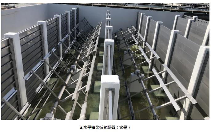 (1)水平軸槳板絮凝器 通常認為,水平軸槳板絮凝器是大型水處理廠中最具成本效益的絮凝器。因為允許單個驅動器為多個水平軸提供能量,這樣可以顯著地降低設備投入成本。有些廠家對此類產品進行了升級,包括:關鍵組件使用不銹鋼材質(比如槳葉和鏈條等),專有的校平裝置,自動調心聯軸器和特種軸承襯套、有免維護塑料制造的水下軸承等,盡可能最大程度地減少停機時間,而且使用新型軸承可以延長這種絮凝器的使用壽命,并降低維護成本。