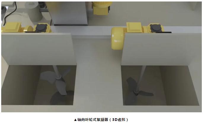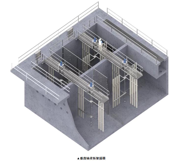 但缺點更突出:第一,葉輪式絮凝器用于產生充分的混合,并盡可能降低湍流。然而,與其他具有較高水流速度梯度的區域相比,更容易產生死角,而且發生水流旋轉。第二,葉輪式絮凝器產生非常高的葉尖速度,容易使絮凝物掉下來。一旦破碎,礬花就不會再聚集。第三,葉輪式絮凝器的每個葉輪都有一個齒輪箱,需要進行日常維護和考慮配電系統。每個齒輪箱必須支撐整個裝置的全部重量和扭矩輸出,而無需外部推力軸承。因此絮凝設施的預期壽命可能會降低。