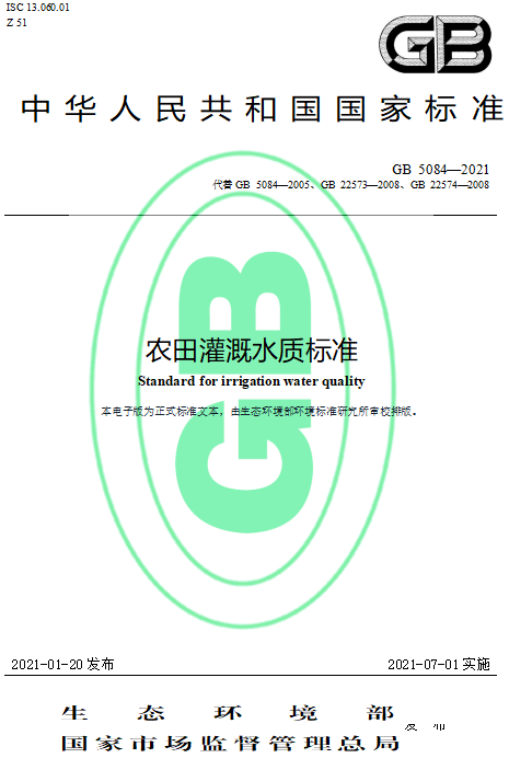 | 農田灌溉水質標準 GB 5084—2021 |