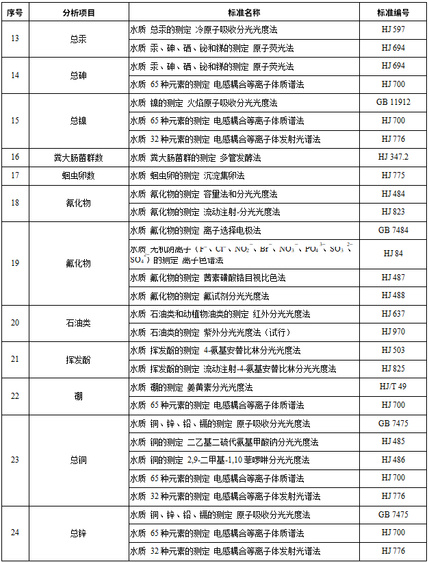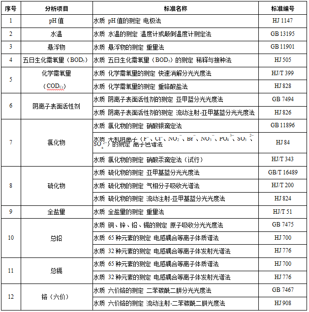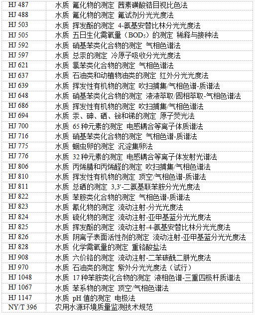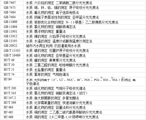4.2城鎮污水處理廠再生水進行農田灌溉,同時應執行 GB 20922 的規定。 4.3向農田灌溉渠道排放城鎮污水以及未綜合利用的畜禽養殖廢水、農產品加工廢水、農村生活污水, 應保證其下游最近的灌溉取水點的水質符合本標準的要求。 5監測與分析方法 5.1監測 農田灌溉水質基本控制項目和選擇控制項目的監測布點和采樣方法應符合 NY/T 396 的要求,待農田灌溉水質監測技術規范發布實施后從其規定。 5.2分析方法 本標準控制項目分析方法按表 3 執行。本標準發布實施后國家發布的監測標準,如適用性滿足要求, 同樣適用于本標準相應控制項目的測定。 表 3 農田灌溉水質控制項目分析方法