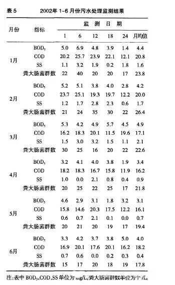 2.4.2 處理效果 該污水處理工程自2002年初投人運行以來十分穩定、處理效果良好。經過對該出水水質6個月的測量,BOD 、COD、SS的總去除效率6個月的平均值分別為97.3%、92.8%、99.3%,其出水的總平均值分別為4、l8、l mg/L,而檢測細菌和病毒的主要指標大腸桿菌數也非常低,總均值只有22個/L,遠遠優于要求的出水水質標準(見表5)。 2.4.3 MBR工藝與醫療廢水常用處理工藝的分析對比 以上分析可知MBR處理醫療廢水的效果是相當好的,特別是針對病源性微生物和病毒。而且,針對處理醫療廢水所需的綜合條件,它也有著其獨特的優點。由于醫療廢水是屬于高危險性的廢水,其污水 處理系統必須具備以下條件: (1)首先要求處理方法能有效地殺死或截留細菌和病毒。 (2)必須保證醫療廢水在未處理好之前不得外泄,并且要求不造成二次污染。