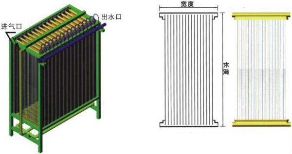 2.膜分離單元的特點 浸沒式膜生物反應器(MBR)中膜分離單元-濾膜的選擇基于三點:1.可有效的分離活性污泥;2.運行成本最低;3.抗污染能力強。通過對國內外膜生物反應器技術的研究,目前國內外使用的膜生物反應器大部分濾膜孔徑基本集中在0.05-0.4μm之間,基本介于超濾、微濾膜臨界點附近。在如上孔徑范圍基本上實現了對活性污泥的有效截留,同時確保其運行能耗最低。再大或者再小的空間將不太適應于膜生物反應器技術。 2.1 微濾膜(MF) 截留顆粒直徑0.1 到數微米之間。微濾膜允許大分子和溶解性固體(無機鹽)等通過,但會截留懸浮物、細菌及大分子量膠體等物質。微濾操作壓力一般在0.01~0.2MPa之間。 2.2 超濾膜(UF) 截留顆粒直徑0.002~0.1μm 之間。超濾允許小分子物質和溶解性固體(無機鹽)等通過,同時截留下膠體、蛋白質、微生物及大分子有機物,用于表示超濾膜孔徑大小的切割分子量一般在1,000~500,000 之間。超濾操作壓力一般在0.05~0.6MPa 之間。 2.2 膜組件型式