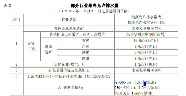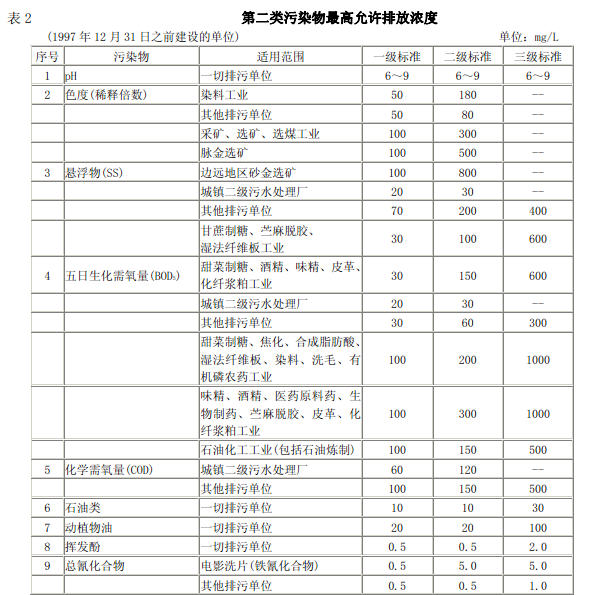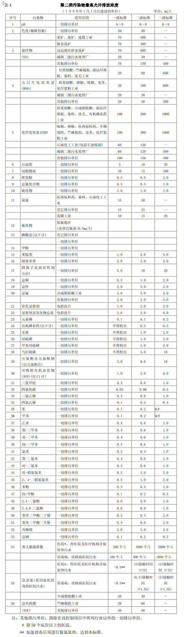 4.2.2.1 1997年12月31日之前建設(包括改、擴建)的單位,水污染物的排放必須同時執行表1、表2、表3的規定。
