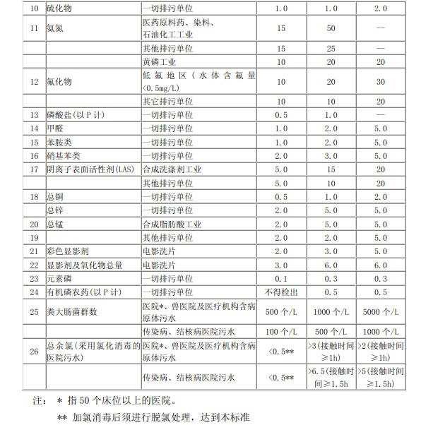 本標準按照污水排放去向,分年限規定了 69 種水污染物最高允許排放濃度及部分行業最高允許排水量。