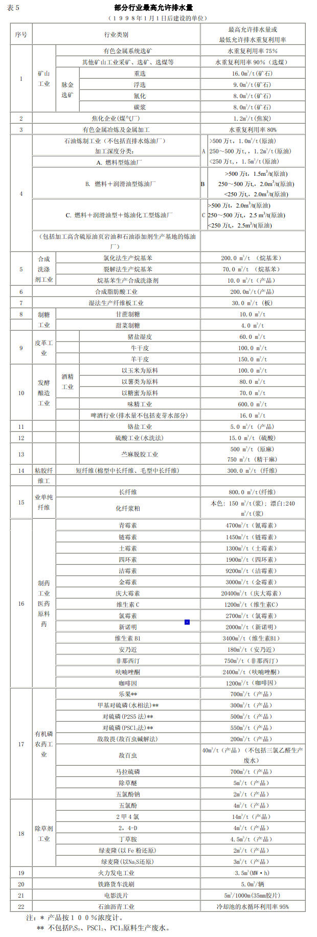 按照國家綜合排放標準與國家行業排放標準不交叉執行的原則,造紙工業執行《造紙工業水污染物排放標準(GB3544-92)》,船舶執行《船舶污染物排放標準(GB3552-83)》,船舶工業執行《船舶工業污染物排放標準(GB4286-84)》,海洋石油開發工業執行《海洋石油開發工業含油污水排放標準(GB4914-85)》,紡織染整工業執行《紡織染整工業水污染物排放標準(GB4287-92)》,肉類加工工業執行《肉類加工工業水污染物排放標準(GB13457-92)》,合成氨工業執行《合成氨工業水污染物排放標準(GB13458-92)》,鋼鐵工業執行《鋼鐵工業水污染物排放標準(GB13456-92)》,航天推進劑使用執行《航天推進劑水污染物排放標準(GB14374-93)》,兵器工業執行《兵器工業水污染物排放標準(GB14470.1~14470.3-93 和 GB4274~4279-84)》,磷肥工業執行《磷肥工業水污染物排放標準(GB15580-95)》,燒堿、聚氯乙烯工業執行《燒堿、聚氯乙烯工業水污染物排放標準(GB15581-95)》,其他水污染物排放均執行本標準。