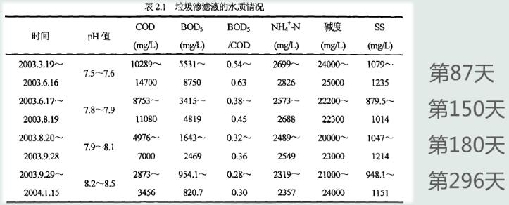 垃圾滲濾液水質隨時間變化情況: