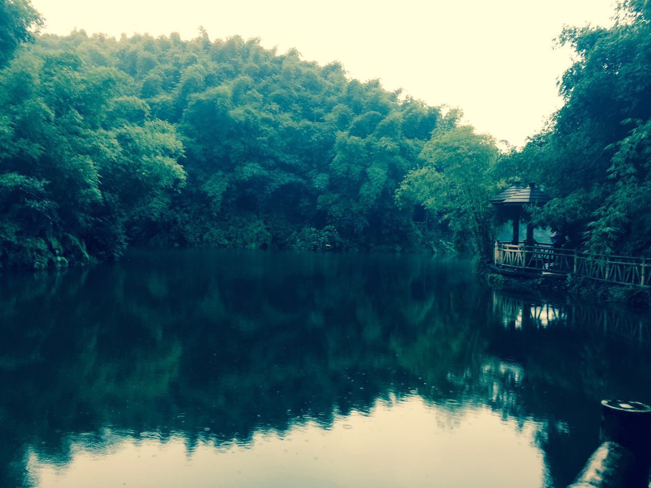 吃飽喝足,大家還未盡興,嘻嘻哈哈的開著玩笑。連我這樣古板嚴肅的人,也偷偷寫下一首打油詩:桌前盤掃光,疑是北大荒,舉杯邀共飲,低頭看手機......手機里另有玄機——鄧美女拍的搞怪照片,把丑人拍的更丑,把胖子變成了飛豬(就是我哈),讓紅臉的老謝變成了僵尸,讓曾小美女低眼滲寒。河邊的雨啪嗒嗒沒有停過,可是這時光是那么美好,優普公司就像一個大家庭,嬉鬧快樂的背后,是濃濃的真誠和彼此的信任。