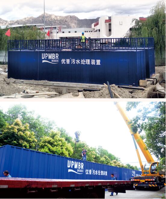 佇立在西藏貢嘎機場正在接受安裝的優普MBR污水處理裝置,在藍天白云下,在鮮艷的五星紅旗的映襯下,顯得格外注目。那是一套300噸/日的優普MBR,為正在進行的機場改擴建承擔起臨時排污處理工作。